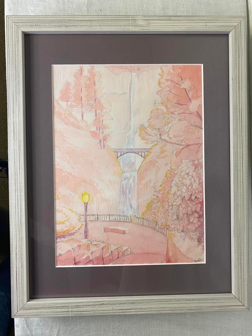 Own your very own piece of original art painted by Painted by Anna G. (12th Grade) specially for our 2022 SYL Art Competition. The theme was "Oregon Landscape." This piece won "Best of Show" overall in our competition. The finished frame measures 15"x12"