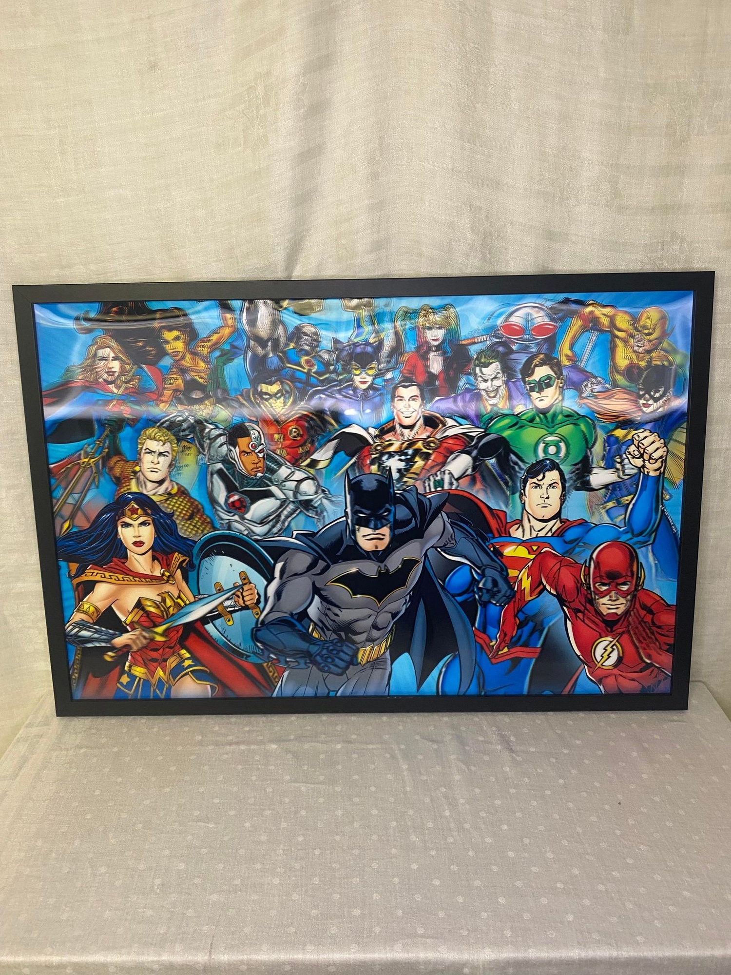 Measures 28 1/2" x 19" Black frame with holographic features in the picture.